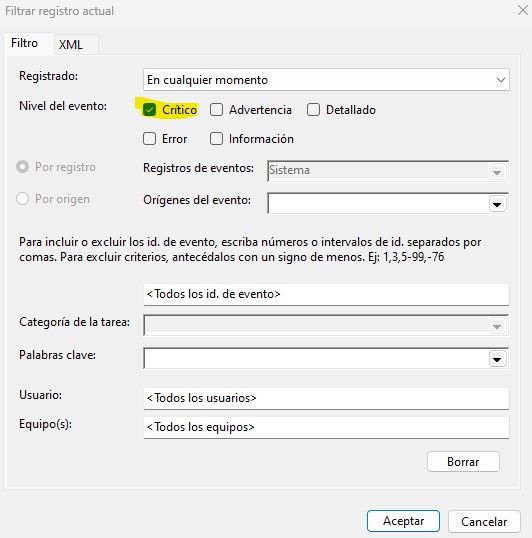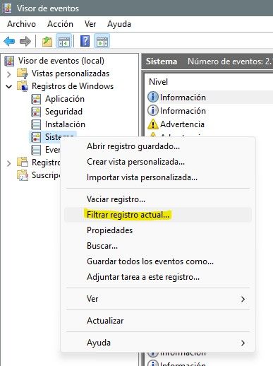 1. Open the Event Viewer and right click over System section. Select Filter current log...