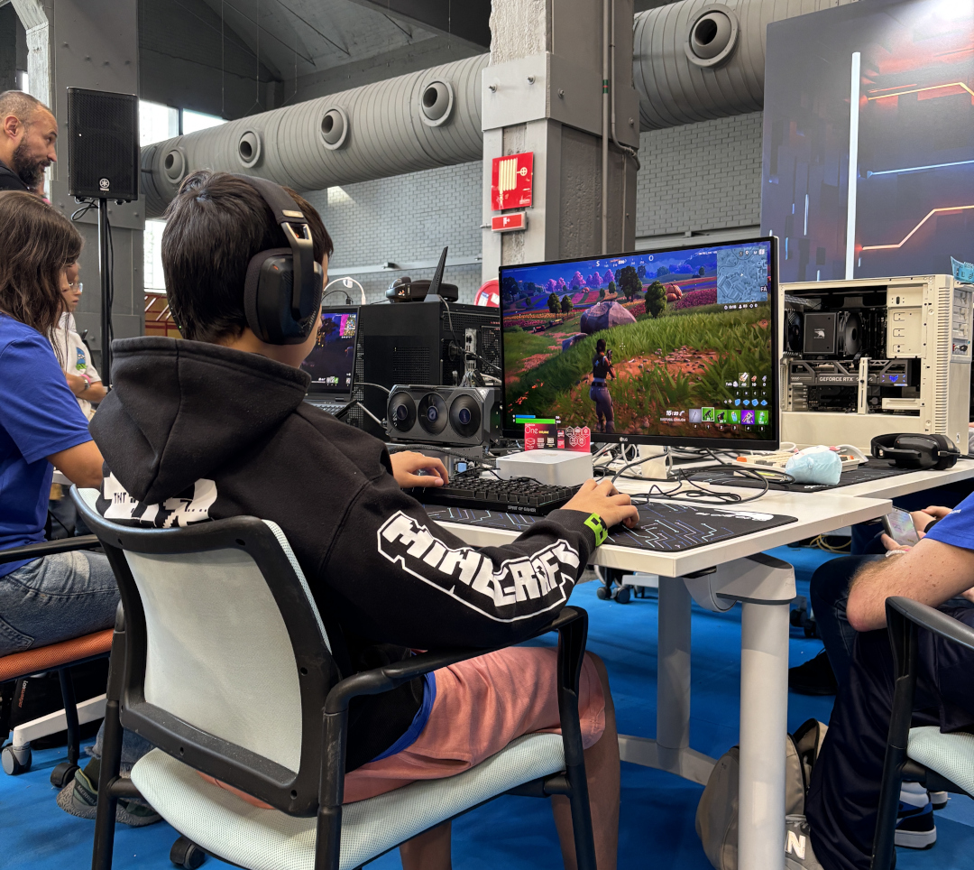 For gaming enthusiasts, we set up 8 gaming stations specifically for the Fortnite tournament, organized alongside our friends at Team Heretics. The morning of the Community Day was a success: dozens of people came by to play matches and score points to win prizes from Team Heretics and Slimbook.